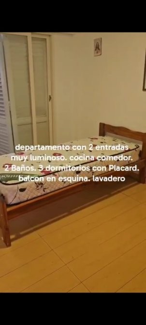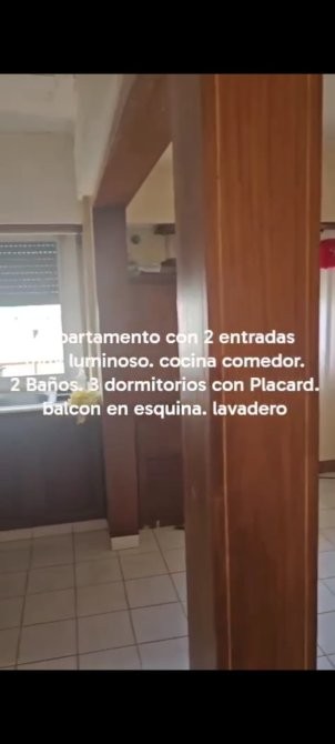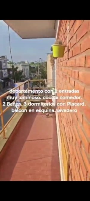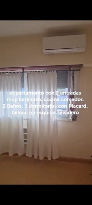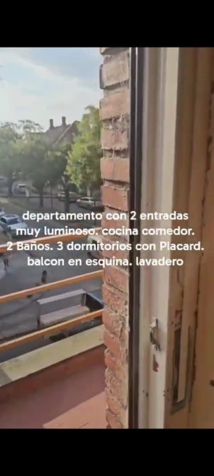 El balcón rodea todos los ambientes respetando la forma en esquina de la propiedad. Cuenta con 3 dormitorios, todos con amplios placares. Dos baños completos y lavadero amplio.